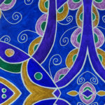 Inspiré par les mosaïques ainsi que les vitraux et la couleur bleu, ce motif imprimé all over a été peint à la main. Les formes en jaune apportent de la lumière des contrastes en fond. La robe Anthelia, d’un style smart décontracté et polyvalente, a été créée en collaboration avec Nathalie Guichon. Nous avons choisi un tissu en coton satiné bio. Dans la mythologie grecque Anthelia était une nymphe de l’eau.