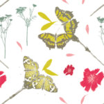 Féminin et printanier, ce motif semi all over imprimé apporte une douceur tout en affirmant ses couleurs. Les papillons se rencontrent créant ainsi des formes de fleurs. Les robes Adryenne et Cheryl ont été créées en collaboration avec Nathalie Guichon et réalisées sur un tissu crêpe léger pour une fluidité et un confort agréable.